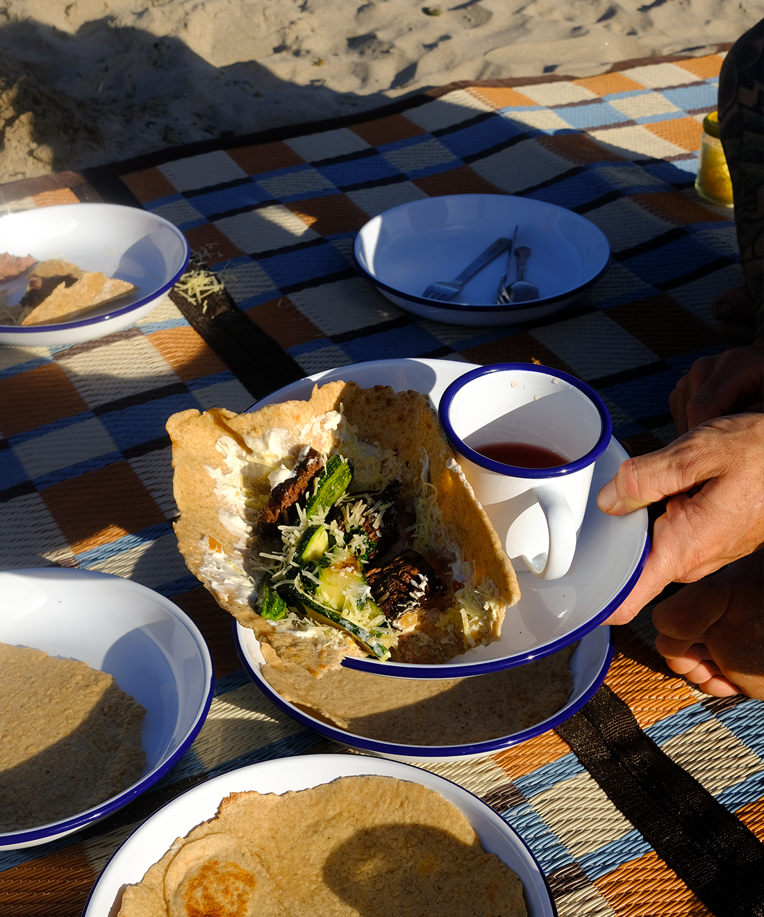 It changes with the seasons, at the moment it’s going to the beach while the sun is still making its way up the sky, and having at least one meal on or by the sand. The photos that I took were on one of Rowan’s days off from Camina and it turned out to be what I would say is a day of time well spent. Down to the wharf for the morning, always with some oranges from our tree. I mixed up some sourdough flatbread dough in the morning before leaving in case of a beach dinner. The boys hung out outside eating more oranges in the afternoon while I got dinner together with greens from the garden and what we had in the fridge and spent the rest of what was left of sunlight hours back down at the wharf.